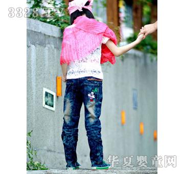 伴你长大粉红色披肩+牛仔裤