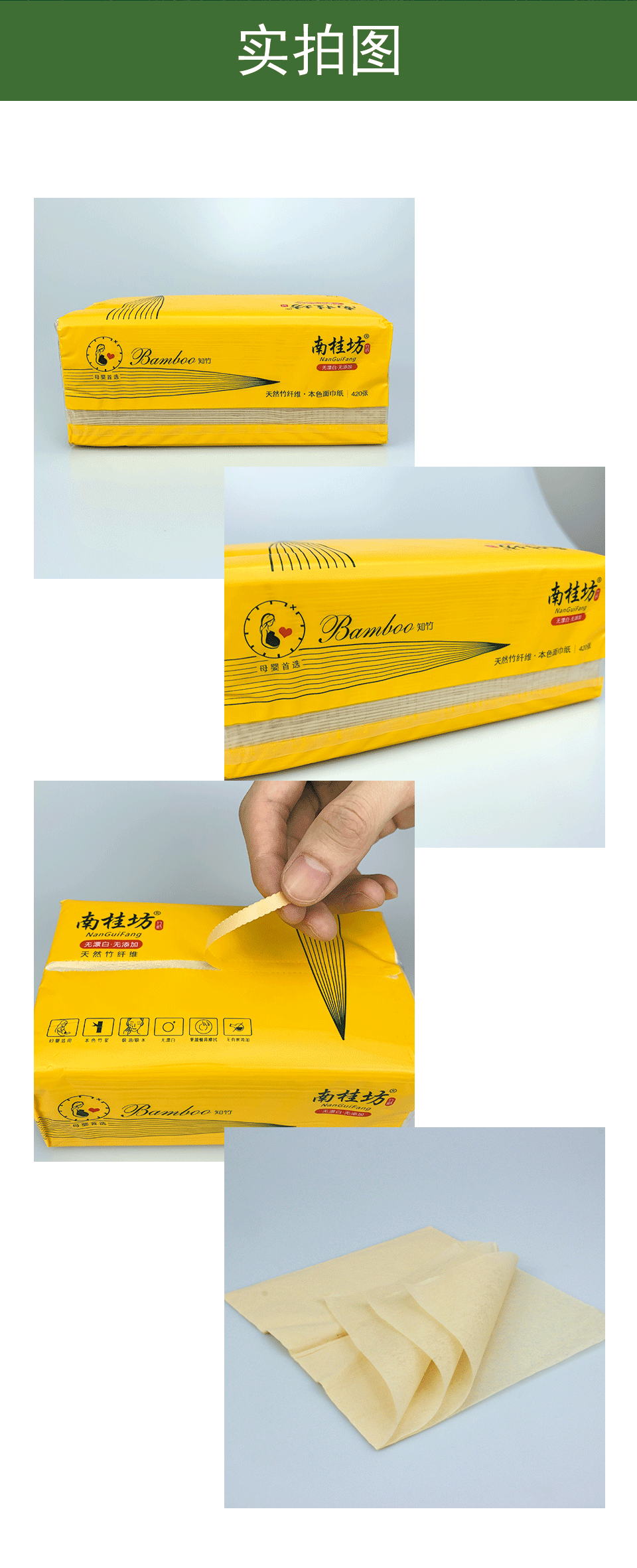 南桂坊天然竹纤维本色面巾纸