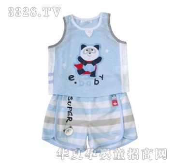 飞天小超人背心套装 颜色:漂白/浅蓝 尺码:66/73/80/90/100 主料:上衣:网眼布/棉质网布/棉质网布(印条)短裤:网眼布/色织网眼布 建议零售价:¥190.00