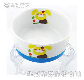 防滑安全儿童陶瓷碗(蓝兔) 产品货号:0200 材料:陶瓷 规格:110mm*50mm 使用对象:3岁以上幼童 宝啦 防滑安全儿童陶瓷碗 1碗