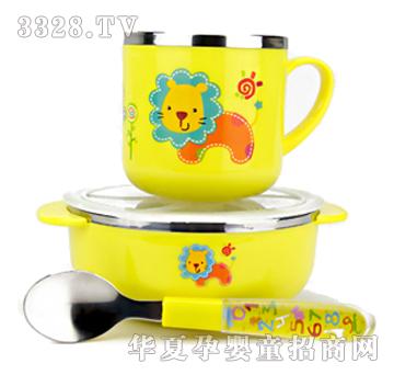 防烫不锈钢儿童餐具套装(黄色狮子) 产品货号:3030 材料:PP+304不锈钢 规格:PP不锈钢杯子 270ml PP不锈钢双耳碗 400ml ABS手把勺 141mm 使用对象:6个月以上婴幼童