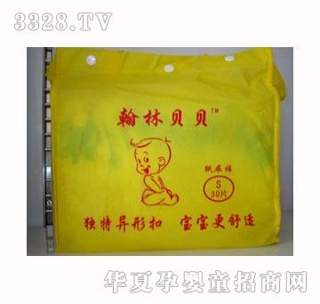 翰林贝贝无纺布尿裤S30 适用范围: S(30片)小码适用于3-8kg男女宝宝 主要原料: 绒毛浆、高分子吸收树脂、无纺布、PE膜 保存条件: 请将产品放于干燥阴凉处,并随时密封包装袋,以防受损或异物进入 注意事项: 1、纸尿裤用完后应包好丢进垃圾桶内,请勿入厕所或随意丢弃; 2、将纸尿裤包装袋放到宝宝无法取到之处,以免引起窒息; 3、宝宝将任何东西放入口中均有可能导致梗塞。请勿让宝宝撕开纸尿裤,避免发生误食及梗塞的危险。如一般衣物、纸尿裤遇火会燃烧,应让宝宝远离火源。