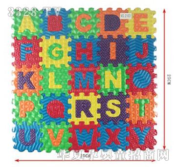 EVA字母拼图 ·类型:拼图 ·证书名称:EN71 PART1,2,3 ·包装:PVC热缩膜 ·产品规格:5.5 x 5.5 x .1 CM ·包装规格:10.5 x 10.5 x 6 CM ·外箱规格:83 x 53 x 72 CM ·外箱体积: 0.3167 立方米 11.19 立方英尺 ·每箱数量:420 PCS ·毛/净重:19.5/17.5 千克