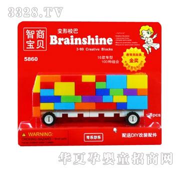 变形校巴 产品型号: 5860 包装规格: 235x65x210mm 产品描述: 变形校巴(吸塑包装),零件数量:58pcs,可随意变换拼接多种巴士、货车及其它模型,充分发挥孩子的想象力和创造力。
