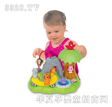 动物乐园 按下小鸟,猫头鹰和河马就会动起来,大象、老虎和狮子还会绕着悬崖转动;拍一拍小猴子,它就会惊叫着跳起来,把三只小动物放到正确位置,宝宝还可以听到赞许声效呢!