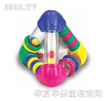 立体三角摇铃 这个装有珠子和彩环的摇铃玩具可以给小宝宝带来各种乐趣:抓玩、滚动、摇动…不但可以训练宝宝的听觉和识别能力,还能帮助他们学会因果效应。