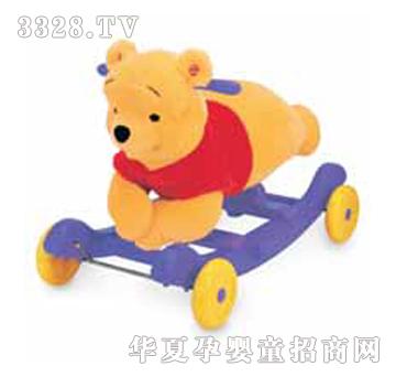 迪士尼维尼熊2合1学步摇摇架 这款2合1维尼熊毛绒摇摇架,附有轮子,反扣轮子下来,摇摇架就可以变成座行车。按下按钮还会播出悦耳的音乐,坐在柔软的毛绒玩具上,既舒服又安全,给小宝宝带来无限乐趣。