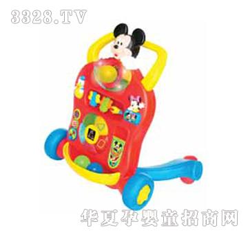 迪士尼米奇学习手推学步车 这款稳固的手推学步车定能成为宝宝学习走路的完美玩具! 转动米奇身上的滚筒或唐老鸭身上的彩球,就会播出悦耳的音乐! 按下不同颜色的按钮,中央的荧光幕会显示出不同的形状图案及发出赞许音效! 内附三个彩色小球,从顶处放下会滚动下来,小宝宝可透过此动作认识因果关系。