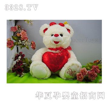 抱心亮片熊 型号:XEX1288 尺寸:30cm 净重:266g 箱规:75cm*45cm*55cm 生产周期:30-45天 最少起订量:500个 特别说明: 主要成分: 采用安全无毒、无污染的布料作为外壳,优质PP棉作为填充物。 洗涤方法: 机洗、手洗、干洗,晾干后需整理成形。 说明: 开封后应注意玩具本身所带的细小物件及产品的包装物品。应及时收掉,避免因小孩误用引起的意外事故。 适用年龄: 适合3岁以上的儿童使用,3岁以下儿童需大人看护下使用。