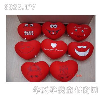 1#心形枕 型号:85066A 尺寸:23*30CM 箱规:75cm*45cm*55cm 生产周期:30-45天 最少起订量:500个 特别说明: 主要成分: 采用安全无毒、无污染的布料作为外壳,优质PP棉作为填充物。 洗涤方法: 机洗、手洗、干洗,晾干后需整理成形。 说明: 开封后应注意玩具本身所带的细小物件及产品的包装物品。应及时收掉,避免因小孩误用引起的意外事故。 适用年龄: 适合3岁以上的儿童使用,3岁以下儿童需大人看护下使用。