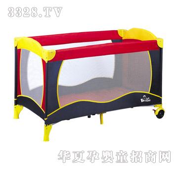 婴幼童床A02-2 规格:110*76*78CM 框架:加硬钢管 布套:150D牛津布和TC花布 配置: 轮子 ,弧形短扶手,三面网,玩具袋